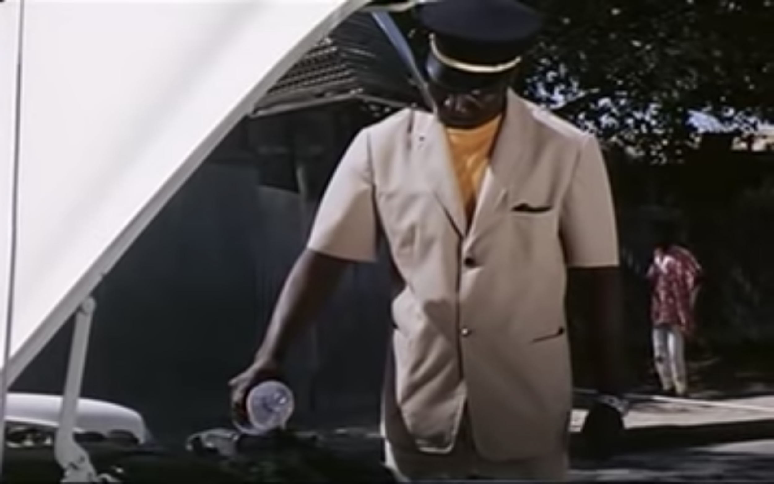 Here Sembène signals what Fanon describes in chapter three of Black Skin, White Masks, “The colonized is elevated above his jungle status in proportion to his adoption of the mother country’s cultural standards. He becomes whiter as he renounces his blackness...” In Xala, imported water signifies–– if not whiteness itself, then at least the achievement of a status measured by whiteness–– as so cleverly illustrated in the absurd wastefulness in this sequence. Later in the film, its protagonist, a corrupt businessman and council to the newly established independent Senegalese government, barks at his daughter “Why do you answer in Wolof when I speak to you in French?” With this exchange, the irony around which the film furls is laid bare. As Fanon says, “The Negro… will be proportionally whiter–– that is, he will come closer to being a real human being–– in direct ratio to his mastery of the French language.” We see that the nation’s supposedly “independent” leadership is just as inclined to uphold the same hierarchies established by the colonial regime
